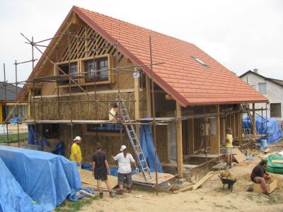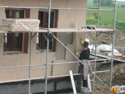 Masivní obvodová stěna z nepálených cihel, tepelná izolace ze slaměných balíků
