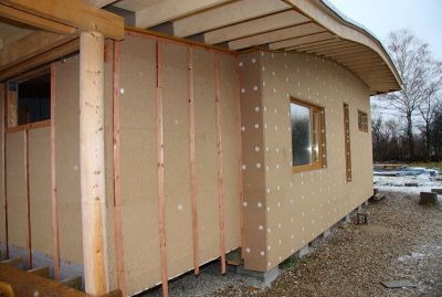 Nosná konstrukce z dřevěných panelů, tepelná izolace z minerální vlny. Pozn.: tento členitý tvar domu je pro nízkoenergetické a pasivní domy nevhodný (foto: Tomáš Kudělka, Jan Navrátil)