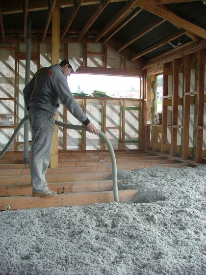 Nosná konstrukce z dřevěných sloupků, tepelná izolace z foukané celulózové drti (foto: Miroslav Navrátil - RIGI)